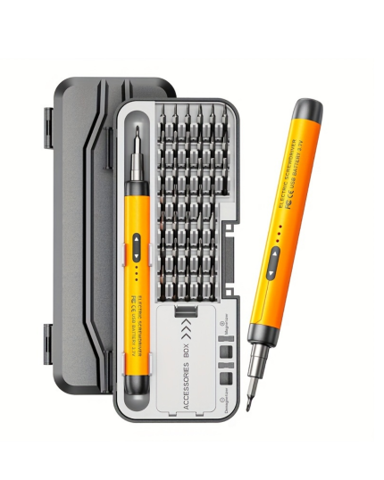 Kablosuz şarjlı elektrikli tornavida seti, profesyonel teknik servis kalitesini ev ortamına taşıyan güçlü ve kompakt bir tamir çözümüdür. Hassas elektronik cihazların güvenli şekilde sökülmesi ve montajı için özel olarak tasarlanmıştır. 3.7V DC Li pil teknolojisi ve 600mAh batarya kapasitesi sayesinde stabil, kesintisiz ve güçlü performans sunar. Type-C şarj girişi ile hızlı ve pratik şekilde şarj edilebilir.