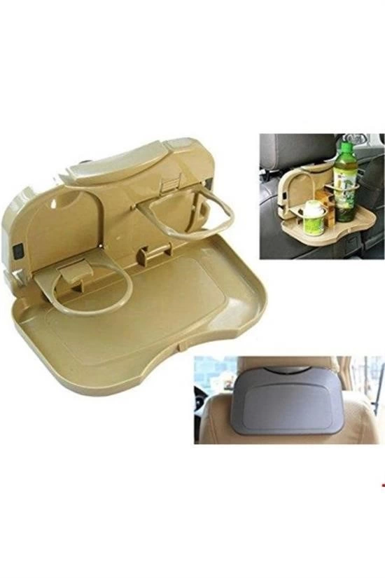 Araç İçi Koltuk Arkası Katlanabilir Bardak Tutuculu Bej Tepsi ( Lisinya )