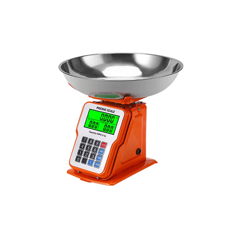 30kg 1g Dijital Kefeli Terazi Pilli ve Adaptörlü Elektronik Tartı, Paslanmaz Çelik Tepsili Tutar Hesaplama Turuncu ( Lisinya )