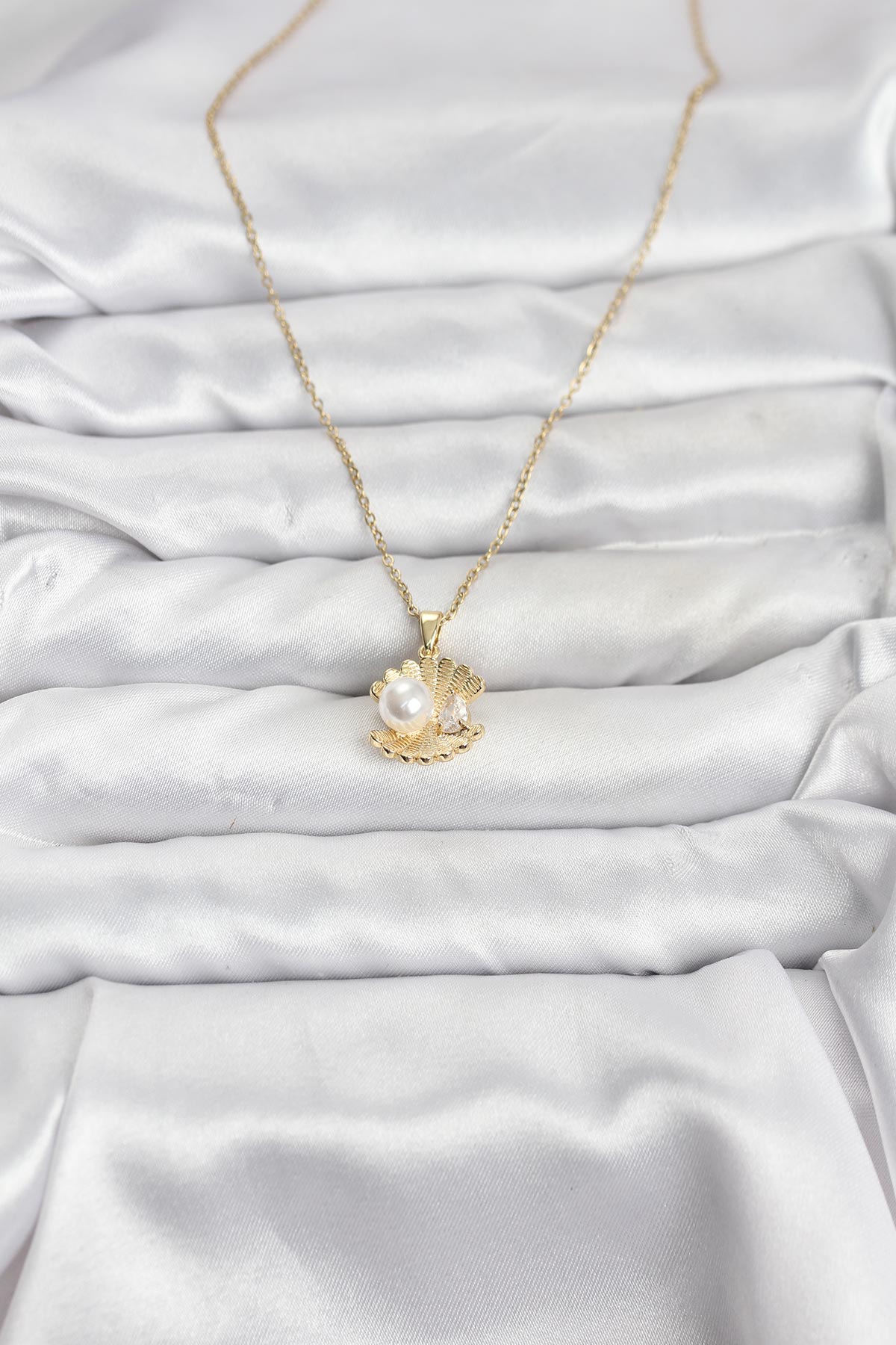 316L Çelik Zincir Gold Renk İstiridye İnci Model Zirkon Taşlı Kadın Kolye – Lisinya