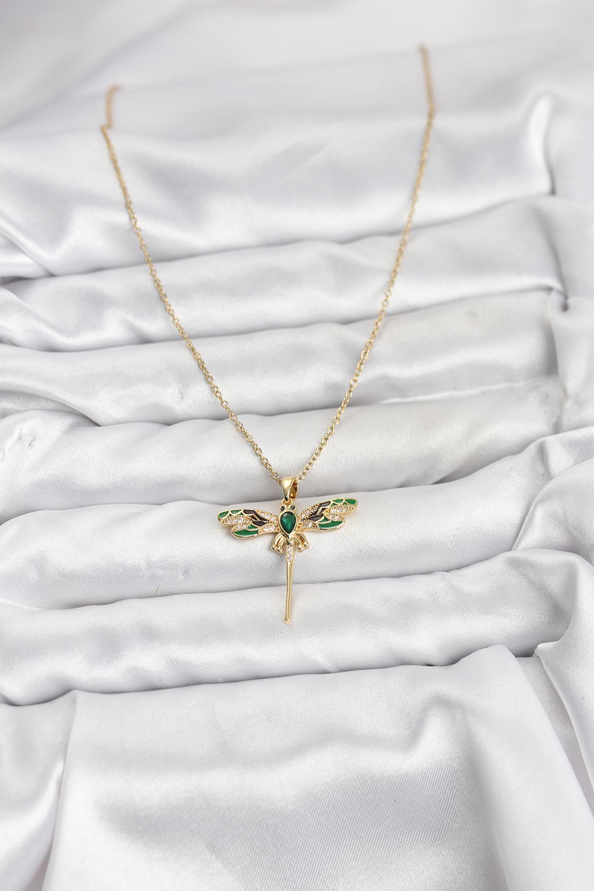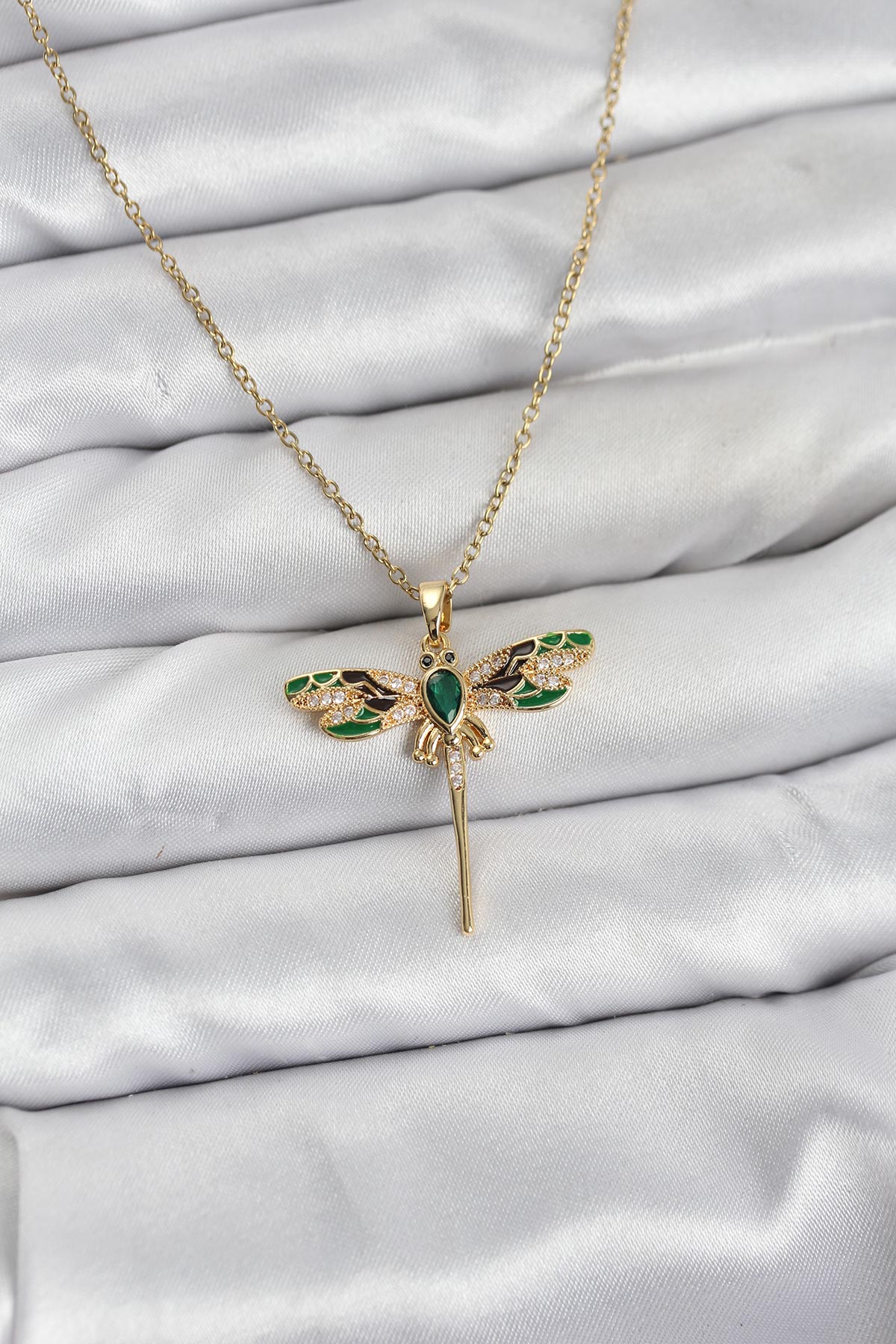 316L Çelik Zincir Gold Renk Yusufçuk Model Zirkon Taşlı Kadın Kolye – Lisinya