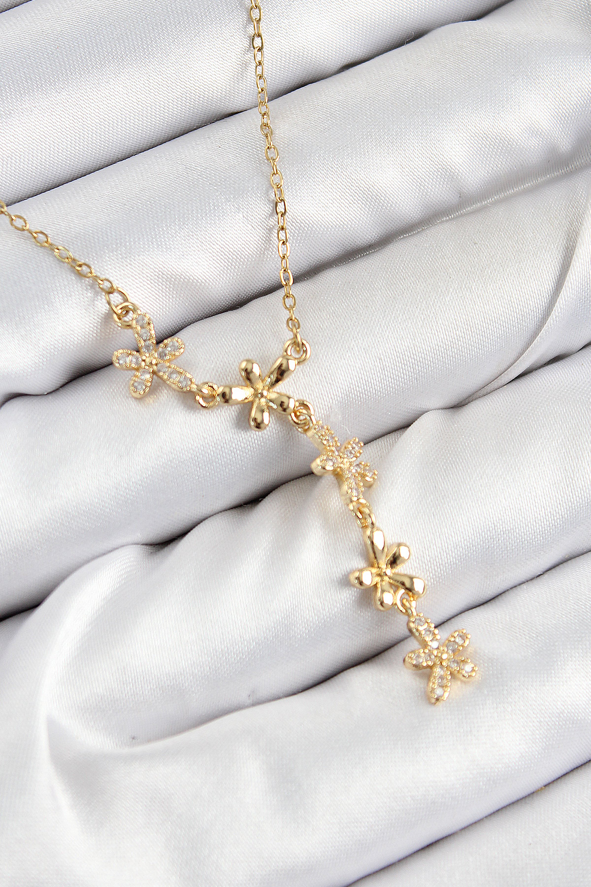 316L Çelik Zirkon Taşlı Çiçek Model Gold Renk Kadın Kolye – Lisinya