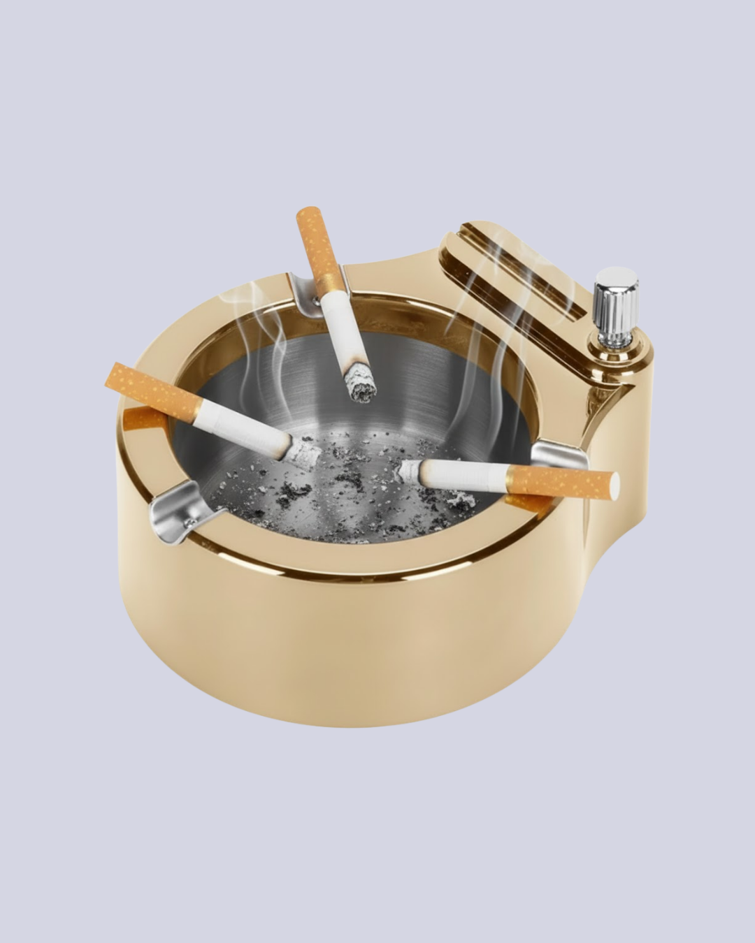 Dekoratif çakmaklı küllük, işlevsel ve estetik tasarımı bir arada sunar. Masa üzerinde düzenli bir kullanım alanı oluşturur. Küllük ve çakmağın birlikte sunulması, günlük kullanımda konfor sağlar.