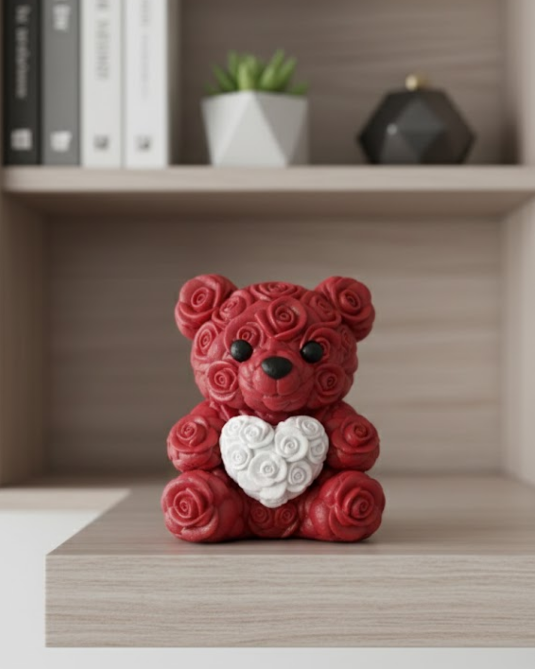 Bu 3D baskı kalp ayıcık, romantik ve şık tasarımıyla özel günlerin vazgeçilmez hediyesi olmaya adaydır. 10 cm boyutuyla minimal ama etkileyici bir dekor sunar.