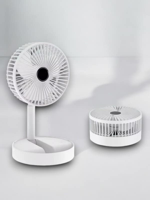 Depolaması kolay, geleneksel fanların pratik olmamasına veda eder, ev ofis ve dış mekan kullanımı için çok uygun bir masaüstü fanı olarak katlanabilir ve uzatılabilir.