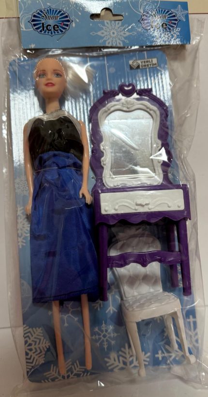 Set İçeriği: Bu set, ana bir bebek figürü ile birlikte gelir. Bebek genellikle 29 cm civarında, bilinen bebek markalarının boyutlarına yakın bir ölçüdedir. Setin en belirgin parçası ise makyaj masası ve beraberinde gelen aksesuarlardır.