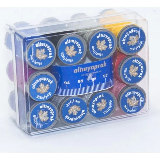 Altın Yaprak Dikiş İpliği Seti 10’lu Yuvarlak Kutulu ( Lisinya )