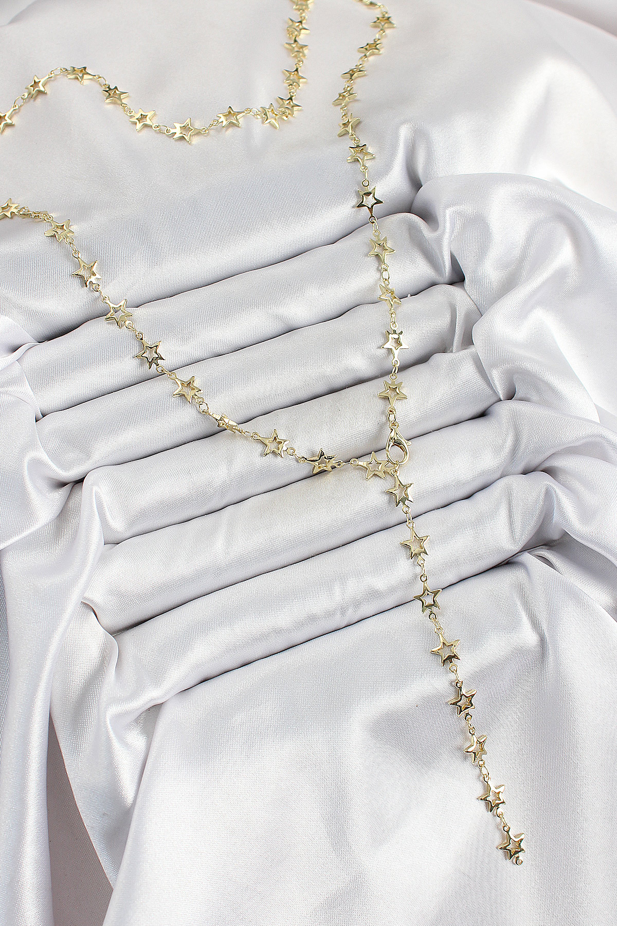 Pirinç Gold Renk Yıldızlı Kadın Y Kolye – Lisinya