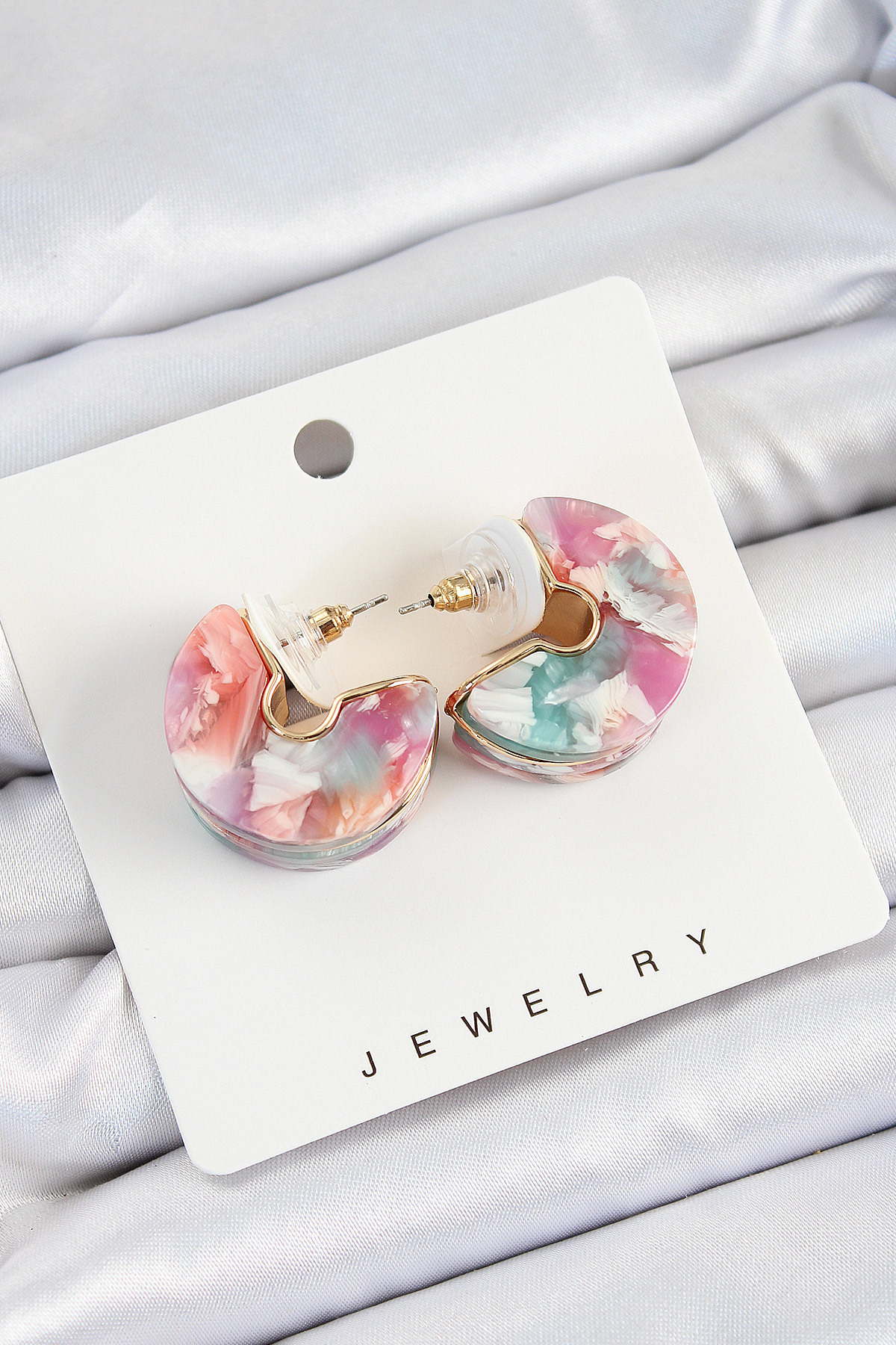 Pirinç Mermer Desenli Vintage Yarım Halka Model Gold Renk Kadın Küpe – Lisinya