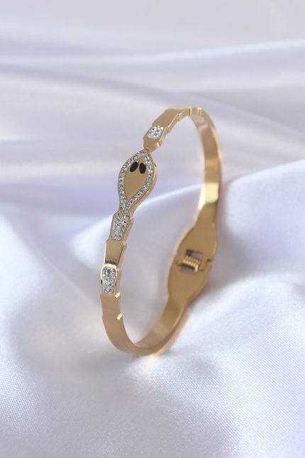 316L Çelik Gold Renk Yılan Model Zirkon Taş Detay Kadın Kelepçe – Lisinya