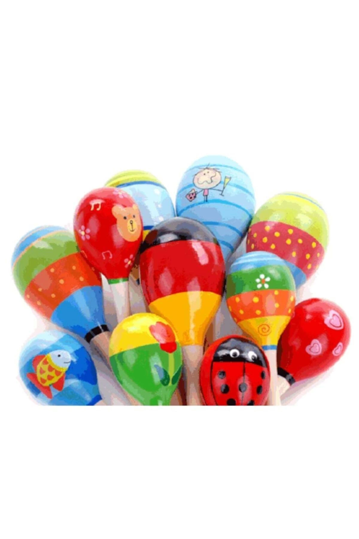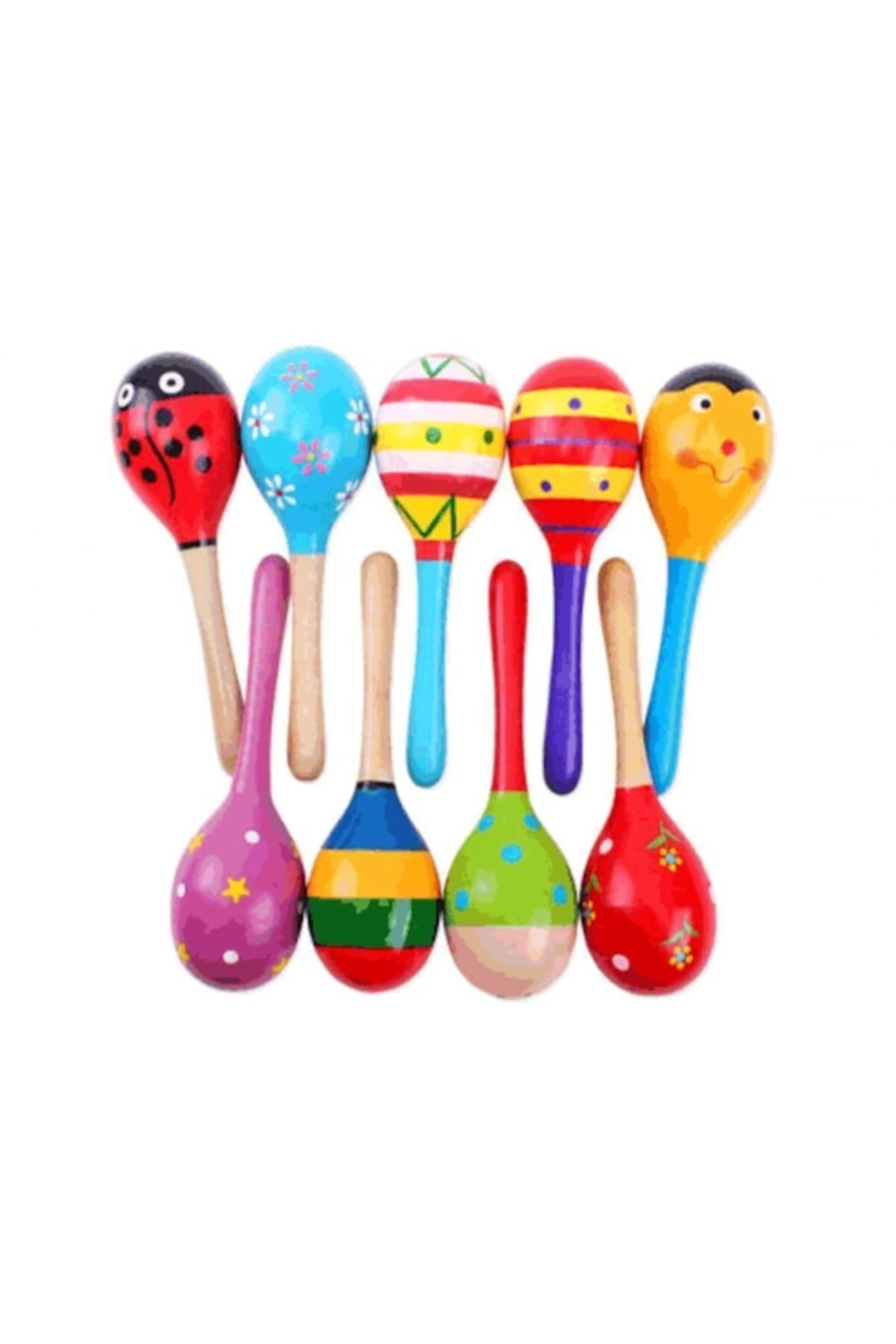 Renkli Ahşap Marakas Boncuklu Ritim Çıngırağı Çocuklar İçin Eğitici ve Eğlenceli Müzik Aleti ( Lisinya )